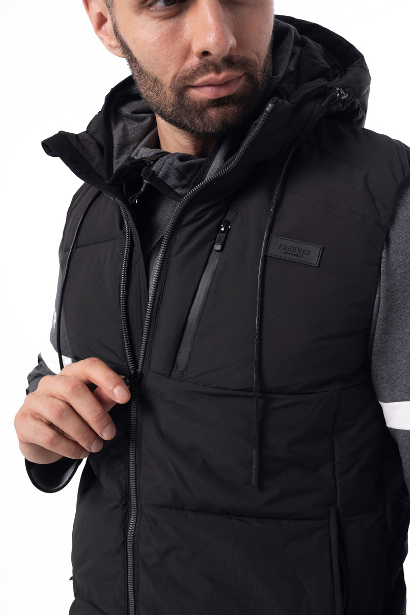 Жилетка чоловіча Freever WF 70635 чорна – просто знахідка для всіх шанувальників кежуал стилю, любителів активного відпочинку та подорожей. Верх із вологостійкого поліестеру добре захищає від вітру та не боїться вологи. Завдяки інноваційному синтетичному наповнювачу на тепловідбивній підкладці TERMO SYSTEM жилет відмінно захищає від холоду. При цьому виріб практично невагомий і займає мало місця у багажі. Додатковий комфорт у негоду забезпечують високу стійку ворота і знімний регульований утяжками на фіксаторах капюшон. Жилет застібається на двозамкову блискавку. Є одна внутрішня і три зовнішні кишені. Внизу передбачені внутрішні утяжки на фіксаторах. Рекомендації по догляду: делікатне прання при температурі не вище 30° гелеподібними засобами для кольорових тканин при локальному забрудненні попередньо можна використовувати рідкий засіб для виведення плям без вмісту хлору віджимання на низьких оборотах не сушити в сушильній машині можлива хімчистка