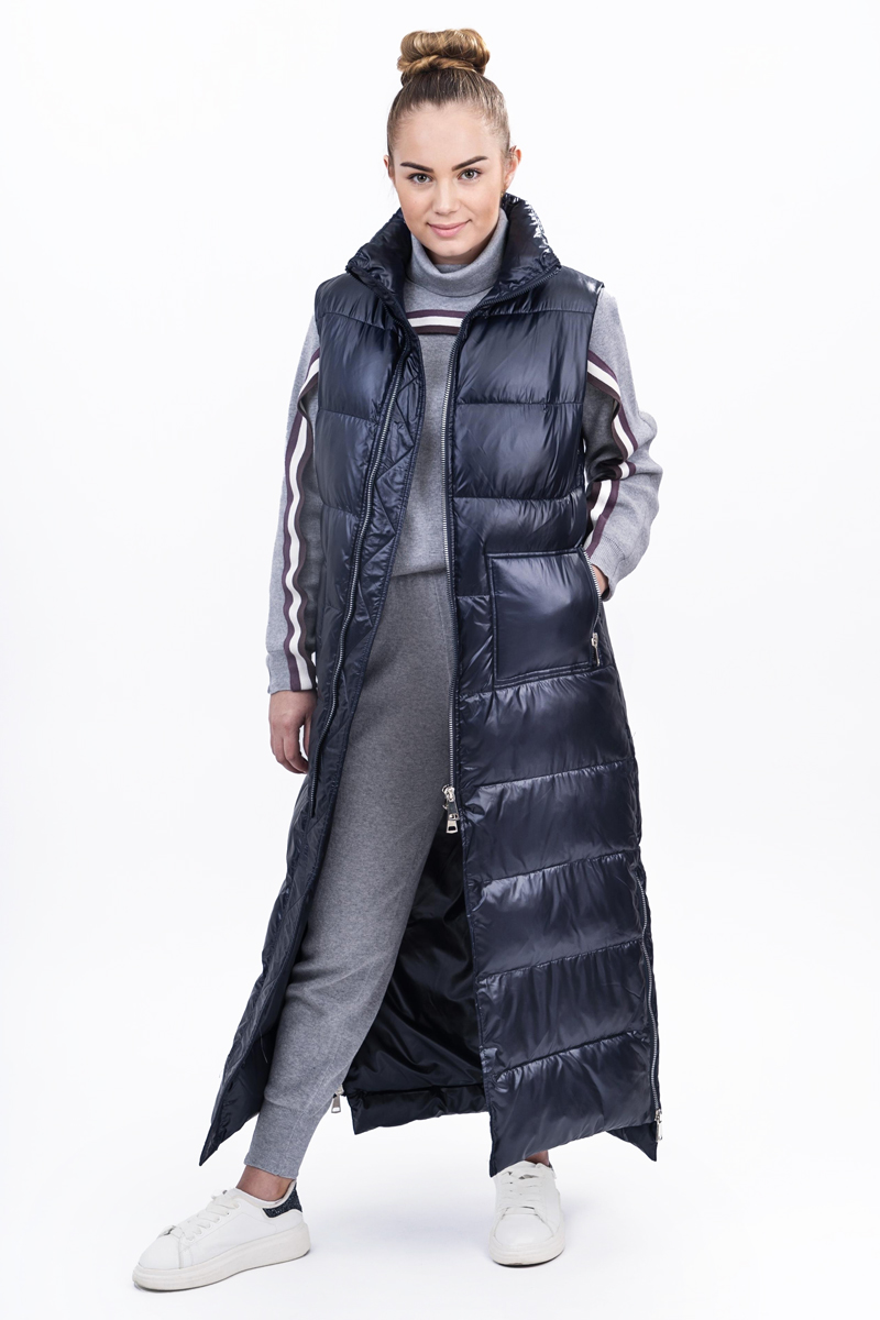Жилетка довга жіноча Freever SF 20508 темно-синя — ця красива сучасна модель із модним силуетом стане ключовою деталлю для створення стильних образів. Одяг займе гідне місце в гардеробі прихильниць casual стилю. Модель прямого крою з довжиною у підлогу, застібається на центральну блискавку з двома бігунками на 2/3 довжини виробу. Особливість: стьобана конструкція у вигляді великих елементів, високий комір стійка, подовжена спинка і блискавки з боків внизу. Є одна внутрішня і дві зовнішні накладні кишені на блискавках. Верх виконаний із поліестеру — міцної вітронепроникної тканини. Підкладка на біо пусі добре зберігає тіло тіла. Рекомендації по догляду: делікатне прання при температурі не вище 30° гелеподібними засобами для кольорових тканин при локальному забрудненні попередньо можна використовувати рідкий засіб для виведення плям без вмісту хлору віджимання на низьких оборотах не сушити в сушильній машині можлива хімчистка