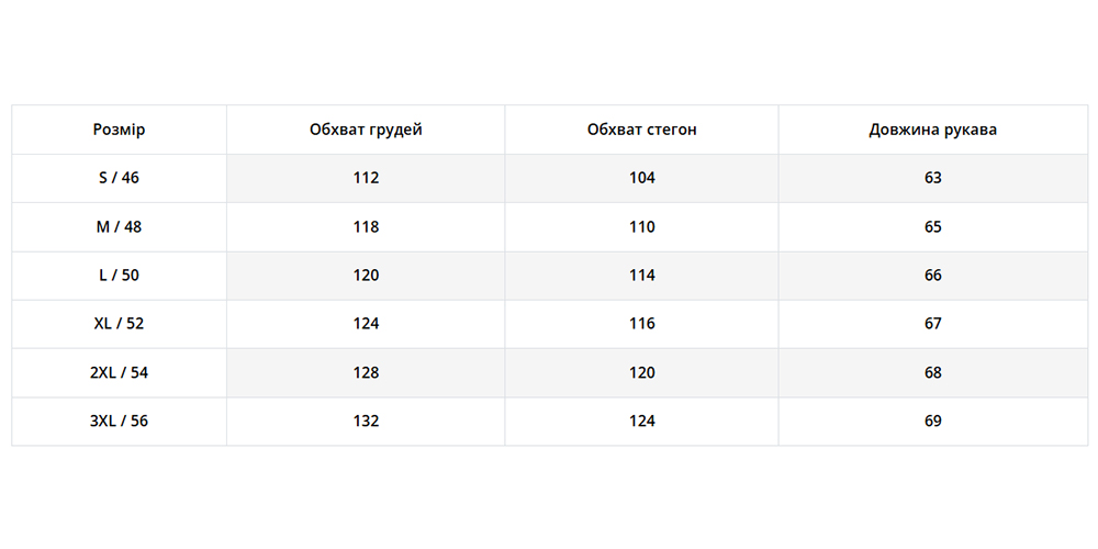 | Розмір | 48, 50, 52, 56 |